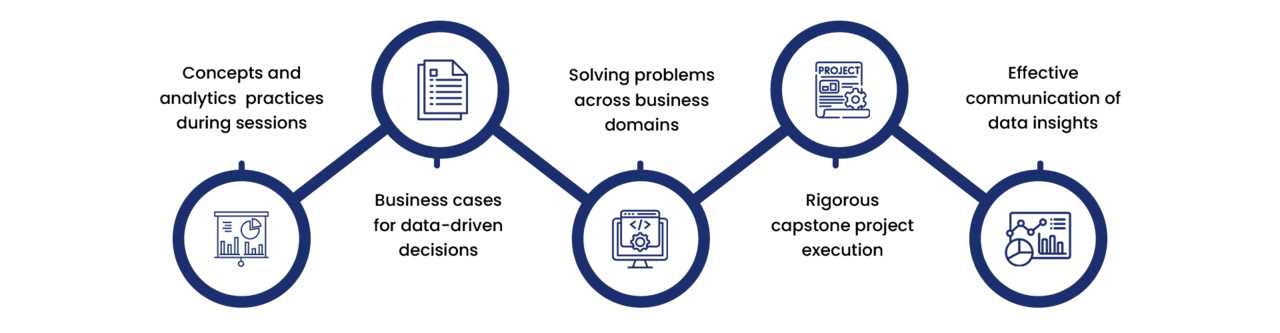 Lead with data to drive digital transformation by enrolling in this business analytics course, a diploma that combines online flexibility with immersive on-campus learning. This programme, recognized as one of the best business analytics certifications, provides hands-on experience in essential data analytics skills, empowering you to make informed, data-driven decisions. With access to top faculty from IIMA, you’ll master advanced tools and techniques that are pivotal for modern businesses. Joining this prestigious community will elevate your career and enhance your leadership potential in the ever-evolving world of analytics.